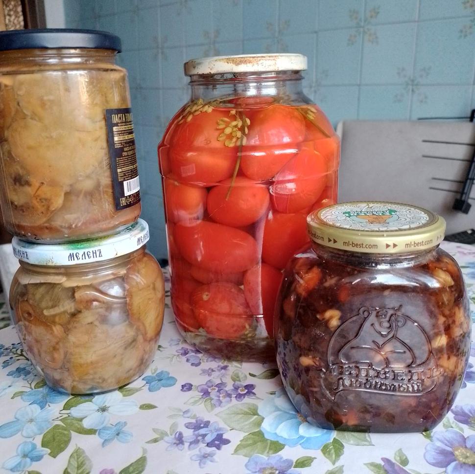 Продам помидоры 2л-450руб., рыжики солёные 0,5л -500руб., варенье из крыжовника с грецким орехом 350руб.