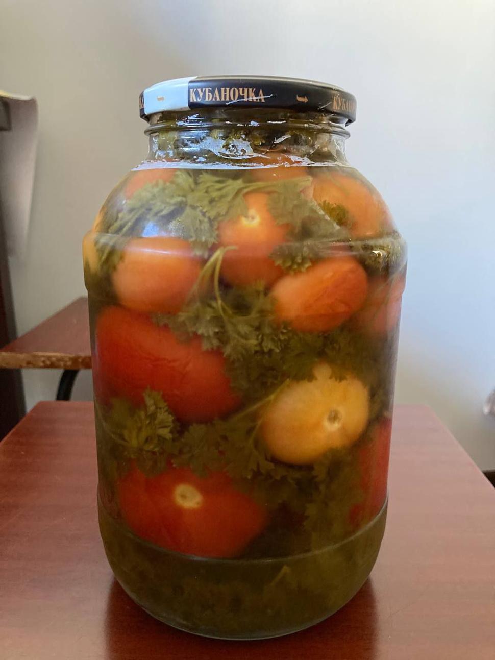 Продам соленые помидоры с петрушкой, 2 л. – 250 рублей. Самовывоз мкр.Северный. (контакты не доступны)