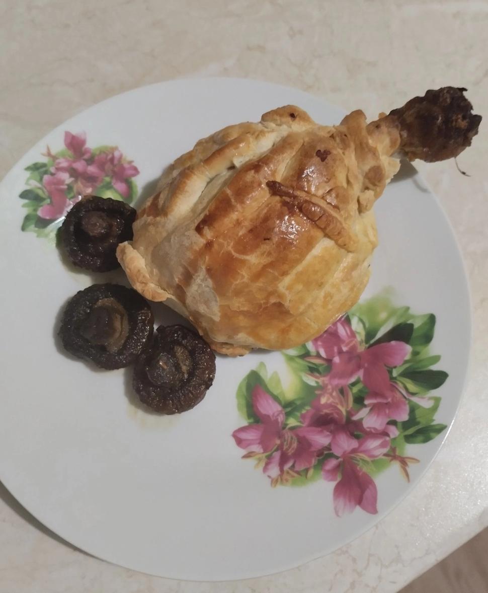 Нога сочная в носке из теста