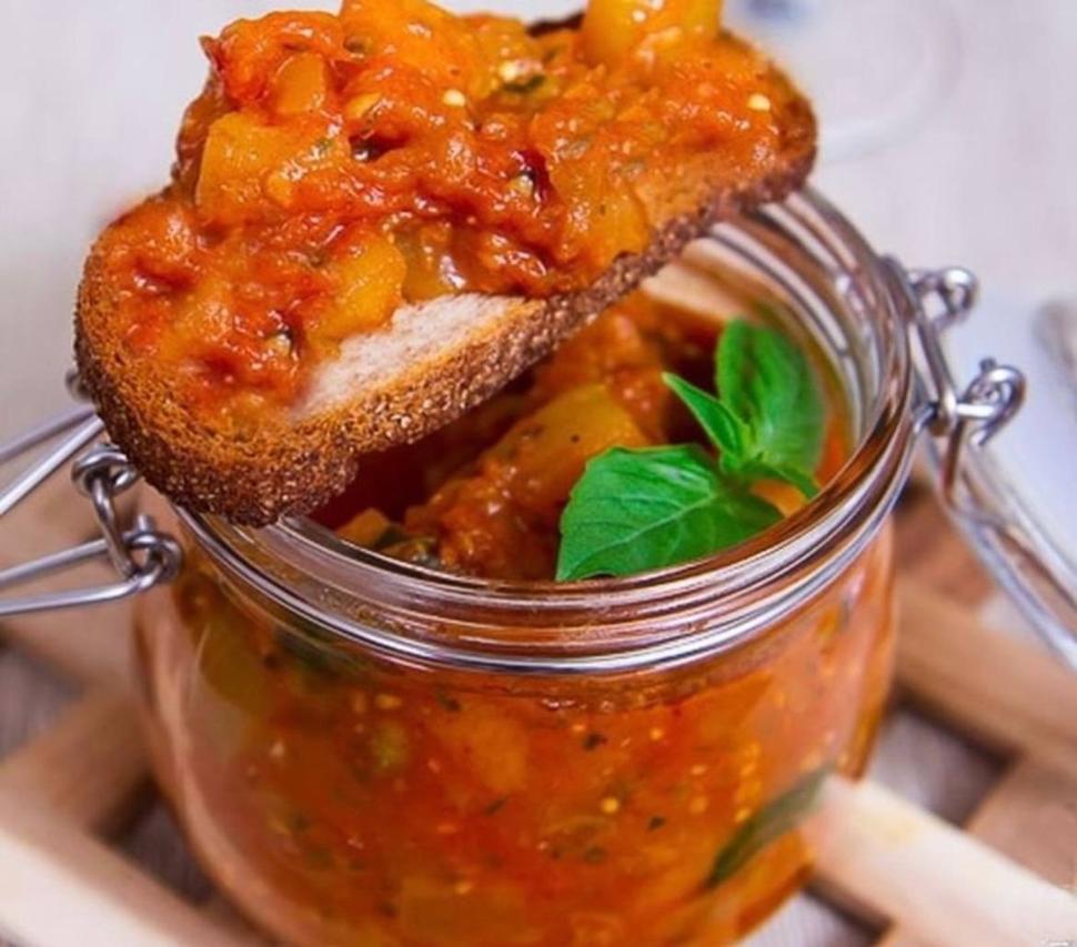 Доведи томатное пюре до кипения, добавь нарезанные овощи, перемешай и туши в течение 45 минут.