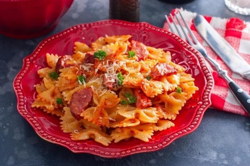 Рецепт приготовления макарон с колбасой и томатной пастой 🍅
