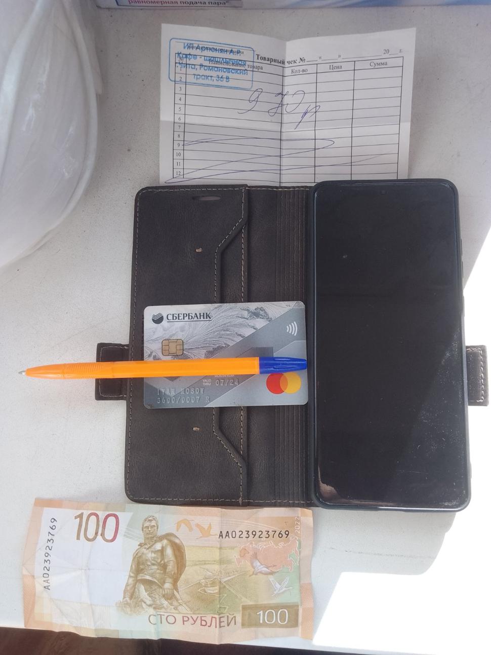 На парковке кафе Аян найден телефон,карта, квитанция и 100 рублей.