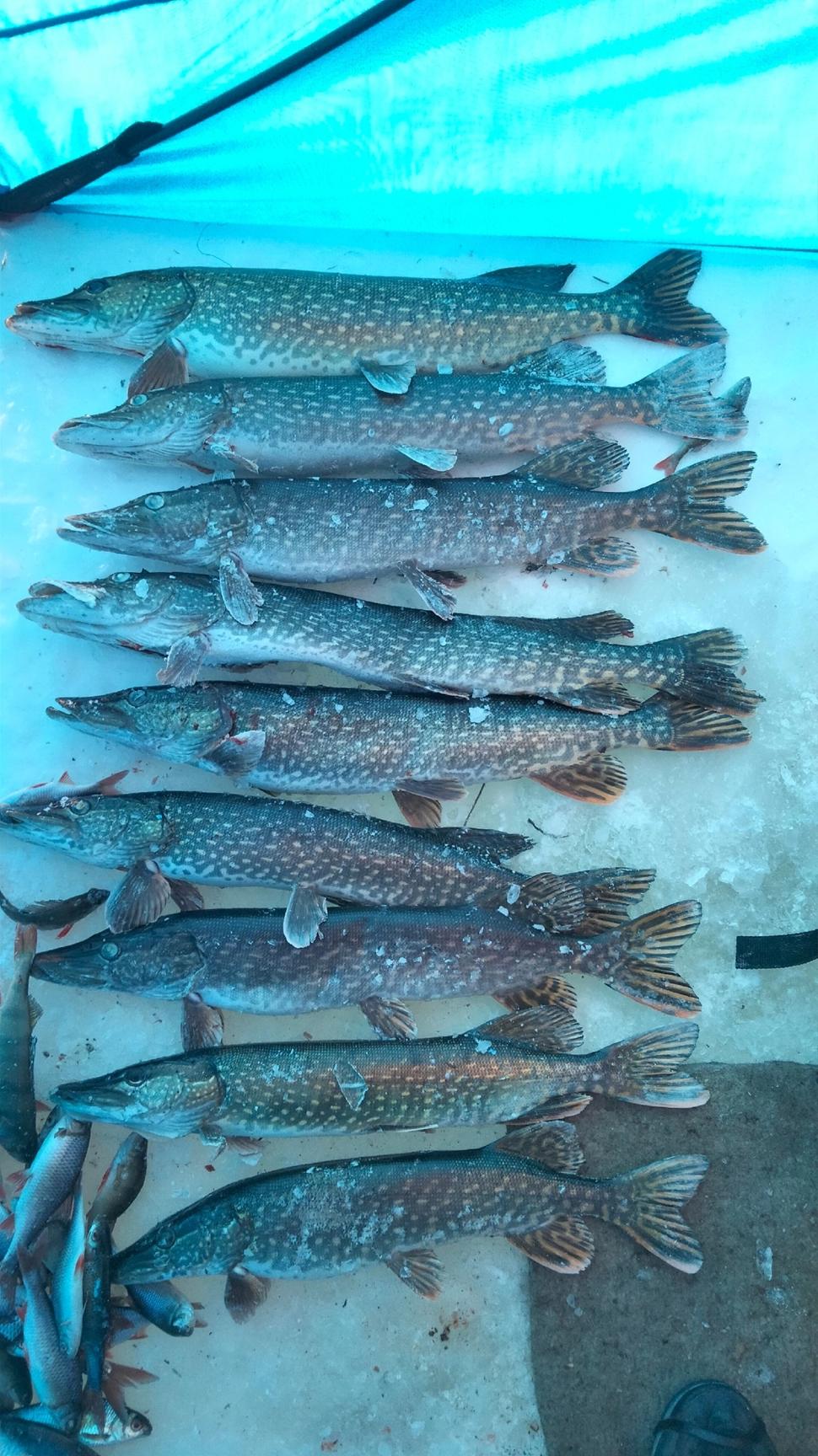 Ундугун.не знали куда сегодня поехать Толи тасей.шакша или ундугун.в итоге на ундугуне оказались.не прогодали.поймали. 10 шук.до 5.30.на удочку слабовато.щука мелкая рыбу разгоняла.жерлицу ставили чтоб ее поймать и в другие лунки перекинуть..ни как не хотела ловиться на жерлицу.потом взяли ей гольяна в лунку просто отпустили.тогда она съела и ушла.еще маленько поклювало.пока камера не села.и потом как отрубило.пробовали эхолотом привлечь.ночной свет включали .никак.ветер холодный и лунки уже все сильно затянуло.решили поехать домой..да и щука неплохая.две до 50см.другие до 70см..