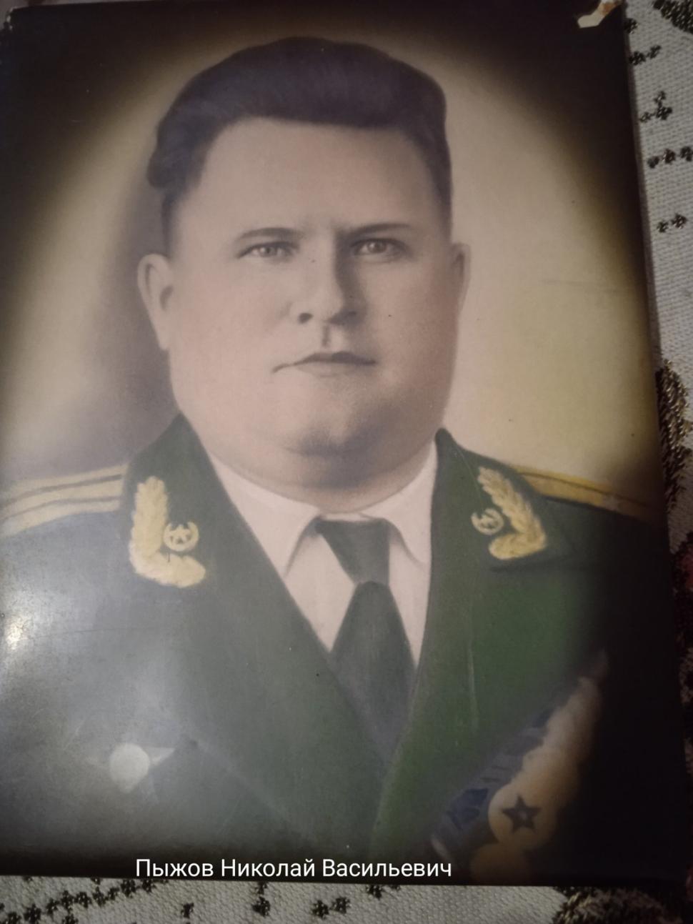 Пыжов Николай Васильевич родился в 1918 году в Кемеровской области. Воевал в чине старшего лейтенанта, оперуполномоченный отдела контрразведки НКО "СМЕРШ". В РККА с 1938 года. Награждён двумя орденами Красного Знамени и другими медалями. Дослужился до звания полковник СА. Горжусь своим двоюродным дедом!!!