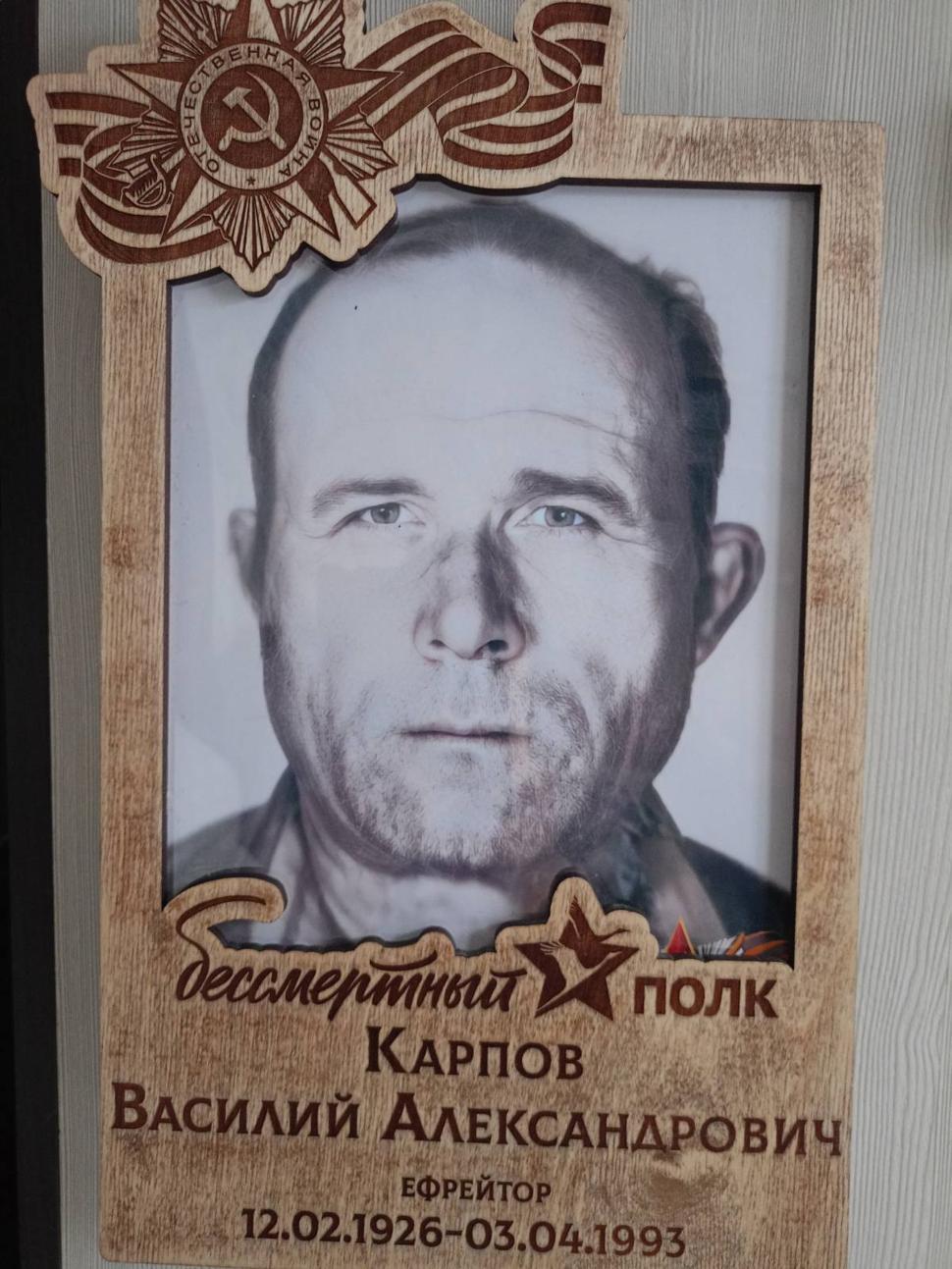 Мой дедушка Карпов Василий Александрович награждён благодарственной Грамотой И. В. Сталина за освобождение городов Тарту, Таллин, Пярну, Эльбинг.