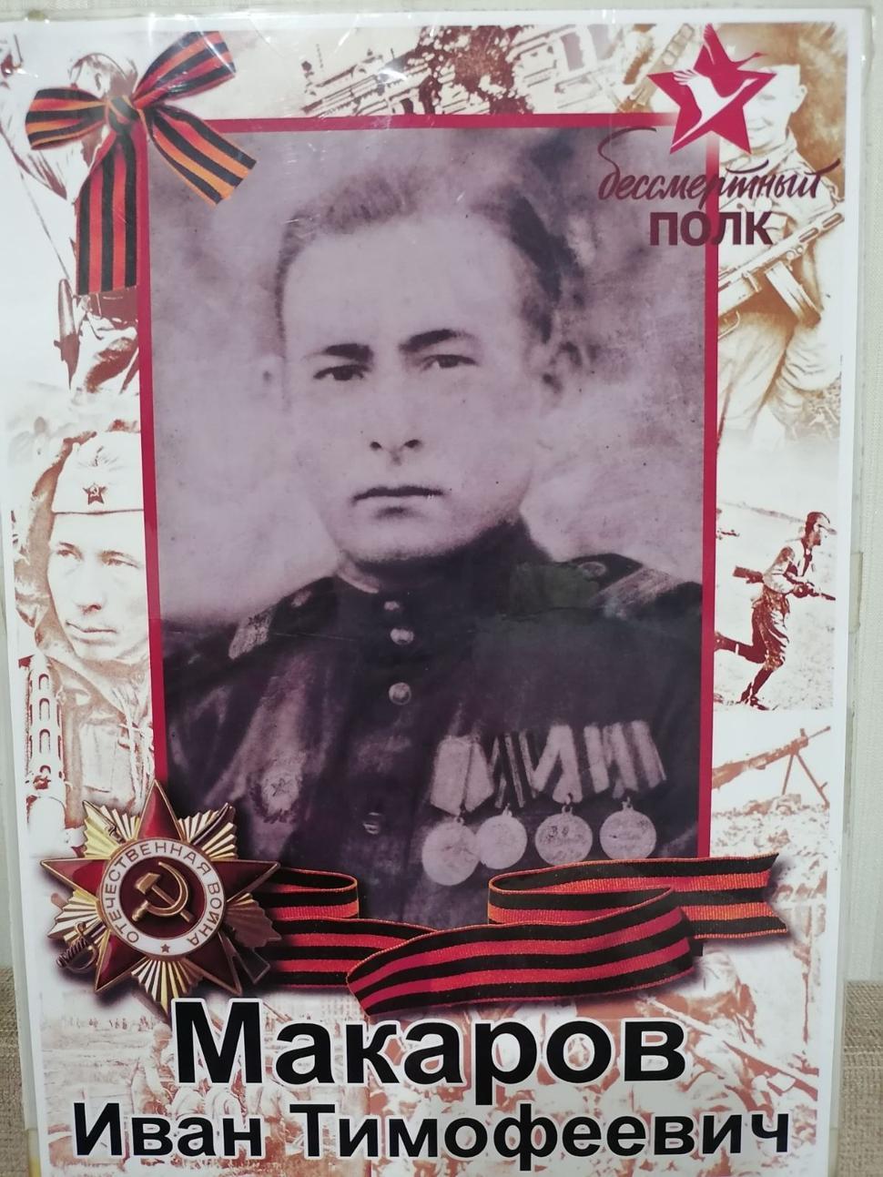 Уже прошло 79 лет как закончилась, эта страшная война, но в памяти каждого человека нашей Родины и моей семьи живет частица подвига и гордости за нашу страну. Макаров Иван Тимофеевич умер 16 апреля 2012 года. Моего прадеда, деда, отца, мужа мы - помним, гордимся и чтим.