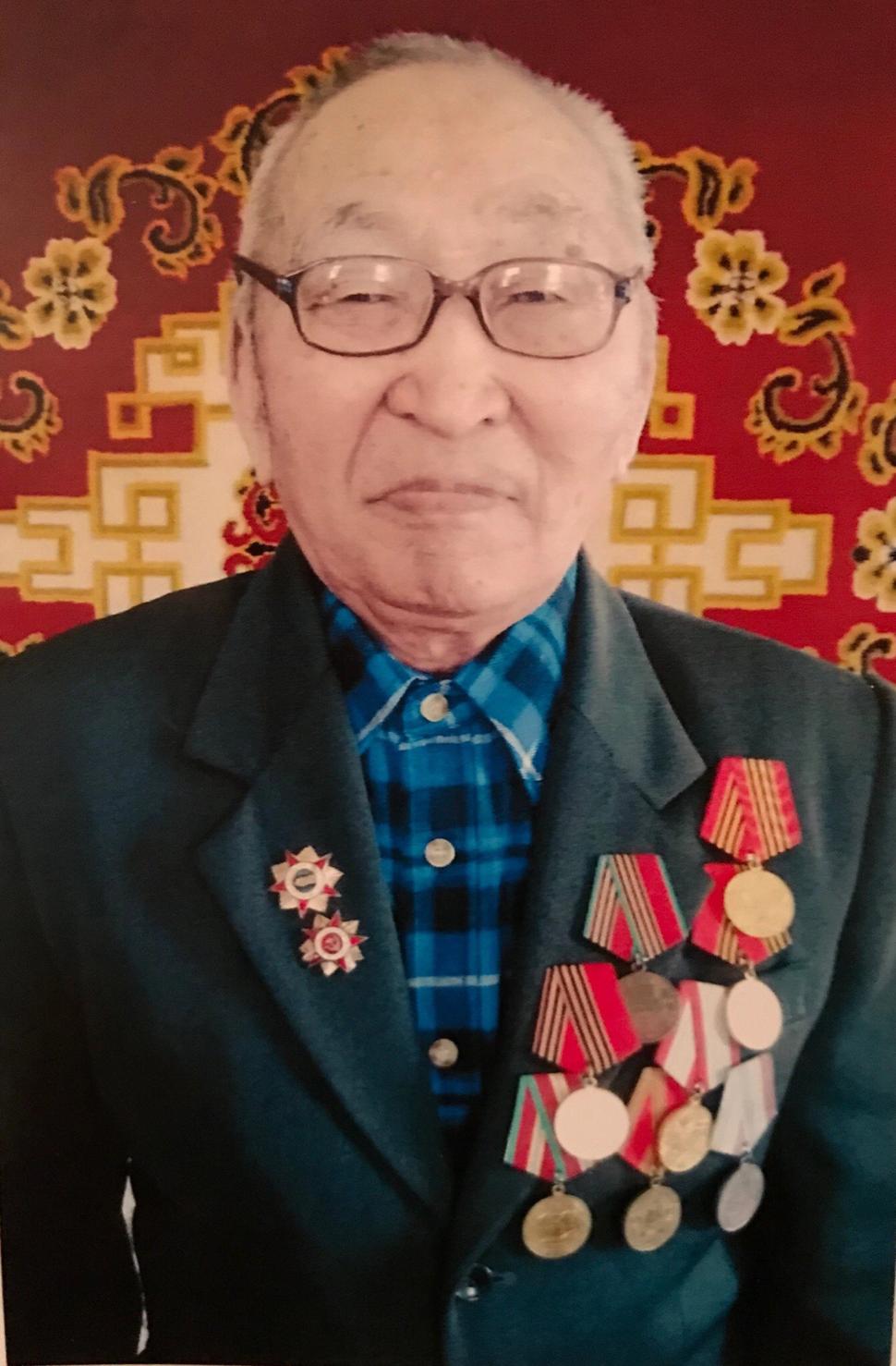 Лхасаранов Ламожаб Мижитович 12.12.1927г-22.05.2020г. Воинское звание - старший сержант. Родился в с. Зуткулей. Дульдургинского района, Читинской области.Участвовал в вой­не с Японией в составе 67-го стрелкового полка войсковой части № 5216 под командова­нием генерал-майора Юманова. Демобилизован в 1951 году. Награды: медали «За победу над Германией в Великой Отечественной войне 1941-1945 гг.», «За по­беду над Японией», Жукова, юбилейные медали.